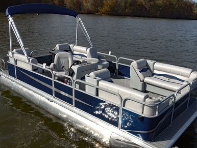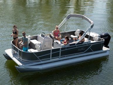 Choose from our selection of fish and cruise pontoons, from our upgraded premium pontoons made by SunChaser, or our standard pontoons made by Pleasure Isle.